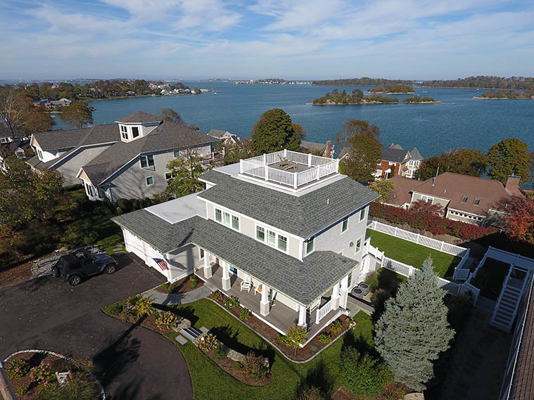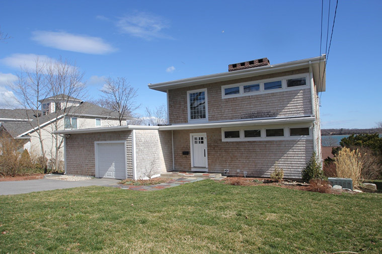 The house was sitting on a tiny lot with commanding views of all of Hingham Harbor and the hills of “World’s End”. With high narrow slit windows and a block-like structure, it looked like an abandoned fort. Everyone referred to it as a ‘tear-down’. The clients asked us if we thought they were crazy to have bought it.