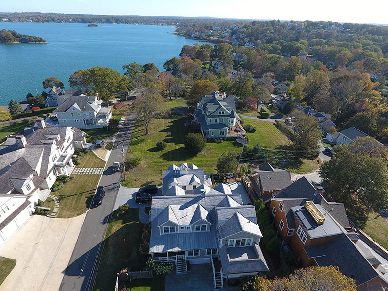 This house dates to the time when Crow Point was a rollicking summer retreat for people taking the steamer boats from Boston or summering on the shore. Samuel Downer, a successful businessman who created this charming community focused on the amusement park at one end of Hingham Harbor.