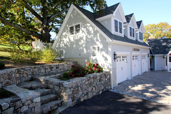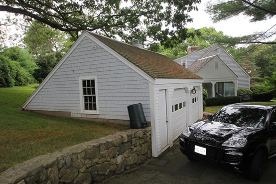 There was a small two car garage, but the new owner is a car buff and wanted three stalls, with a lift and an office above.