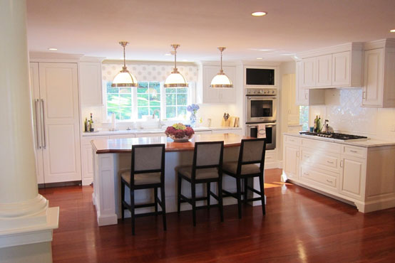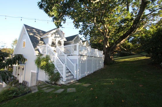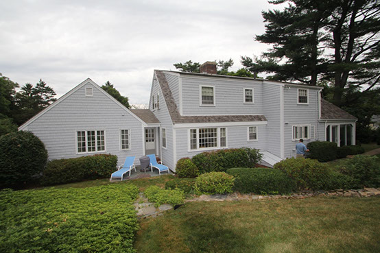 This house was on the market for ages because no one could visualize a transformation of a tired traditional Cape with an ungainly addition to one side. Despite the lovely setting the spectacular water views were largely invisible from the interior of the house.